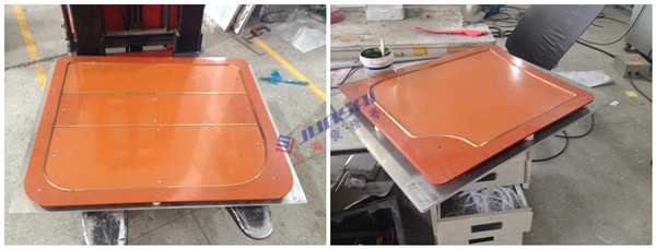 也可以針對大面積產品進行壓花壓痕,如:絲圈門墊、珊瑚絨海綿地墊、汽車腳墊、摩托車坐墊、汽車內飾門板、皮革人造革壓商標等等;